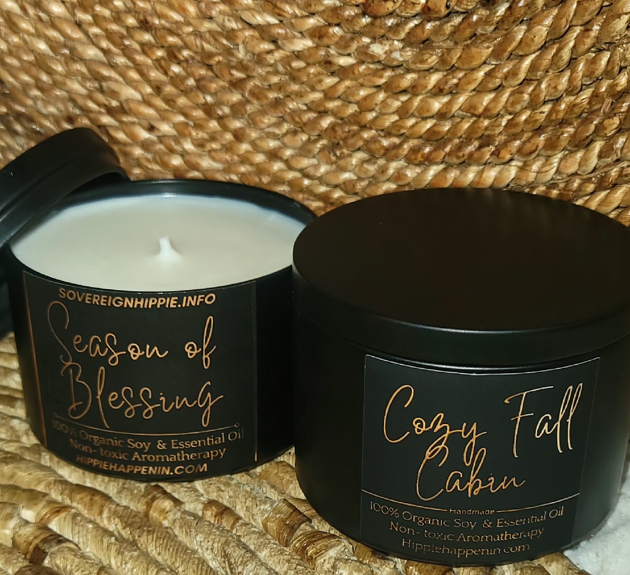 • 𝑪𝒐𝒛𝒚 𝑭𝒂𝒍𝒍 𝑪𝒂𝒃𝒊𝒏- Cedar, Apple, Sage, Lemon, Vanilla, Clove ( only non essential oil here is the Apple which smells like real 🍎 not potpourri apple)